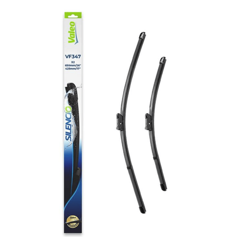 Ensemble comprenant typiquement deux balais d’essuie-glace de tailles différentes. Destiné à des modèles de voitures spécifiques
